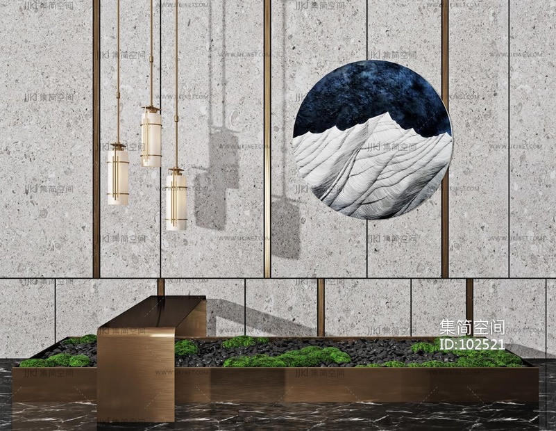 现代植物端景台,金属吊灯, 景观小品水景 3d模型下载 [模型ID:102521]