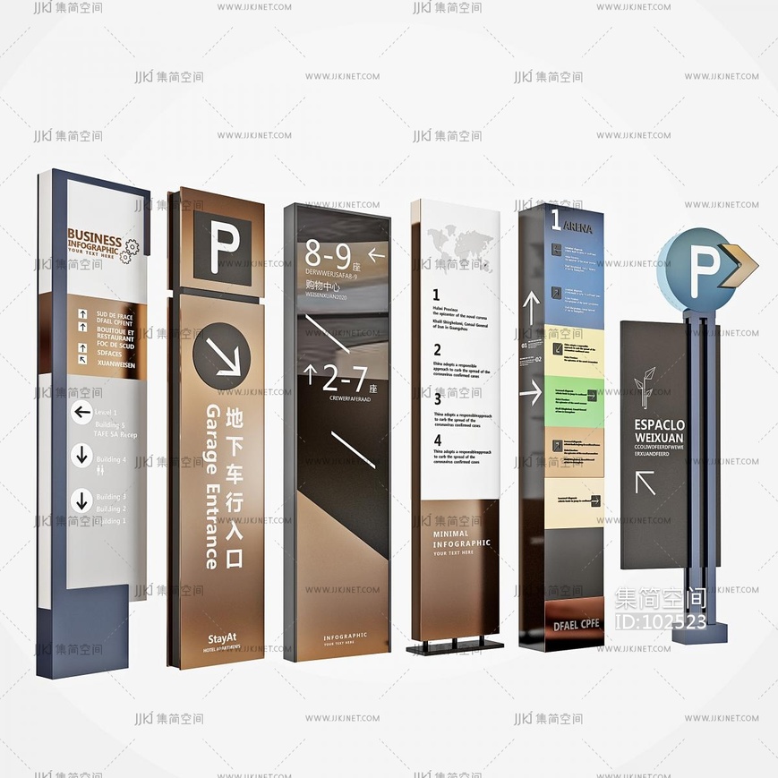 现代指示牌导视 ,引导牌 3d模型下载 [模型ID:102523]