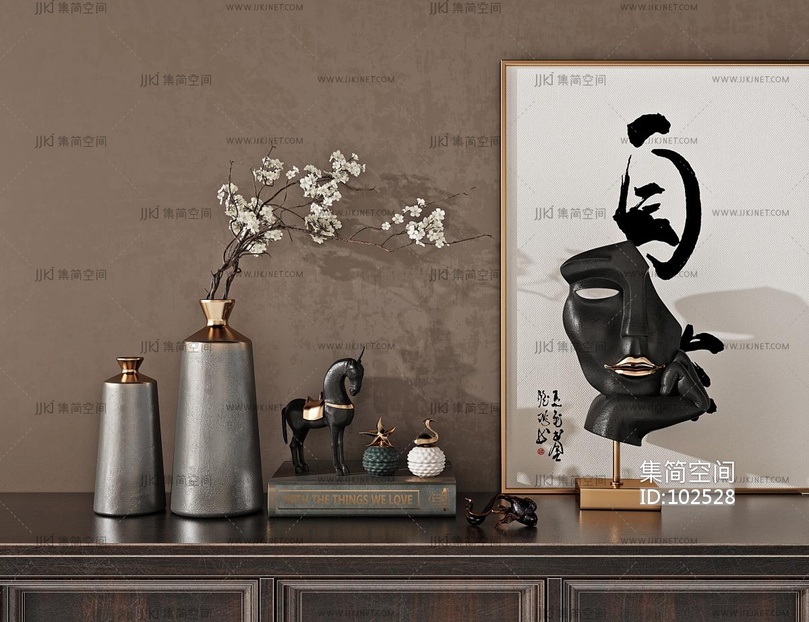 新中式摆件 ,花瓶,雕塑摆件 3d模型下载 [模型ID:102528]
