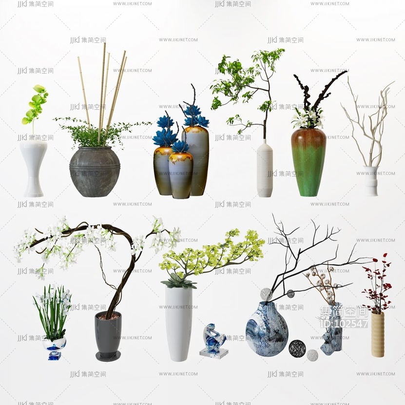 新中式花艺花瓶组合, 3d模型下载 [模型ID:102547]