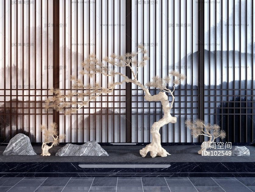 新中式景观植物雕塑 3d模型下载 [模型ID:102549]
