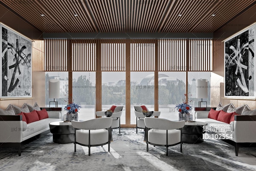 新中式售楼处会客区, 3d模型下载 [模型ID:102554]