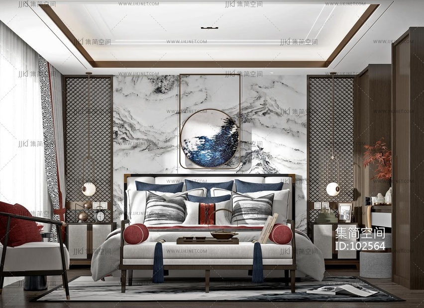 新中式卧室 3d模型下载 [模型ID:102564]