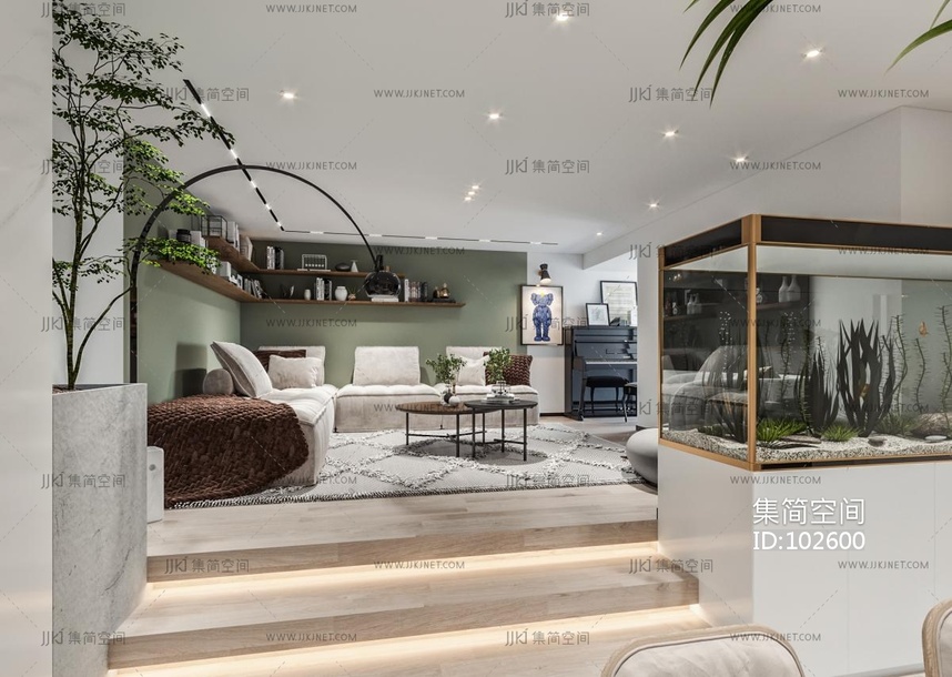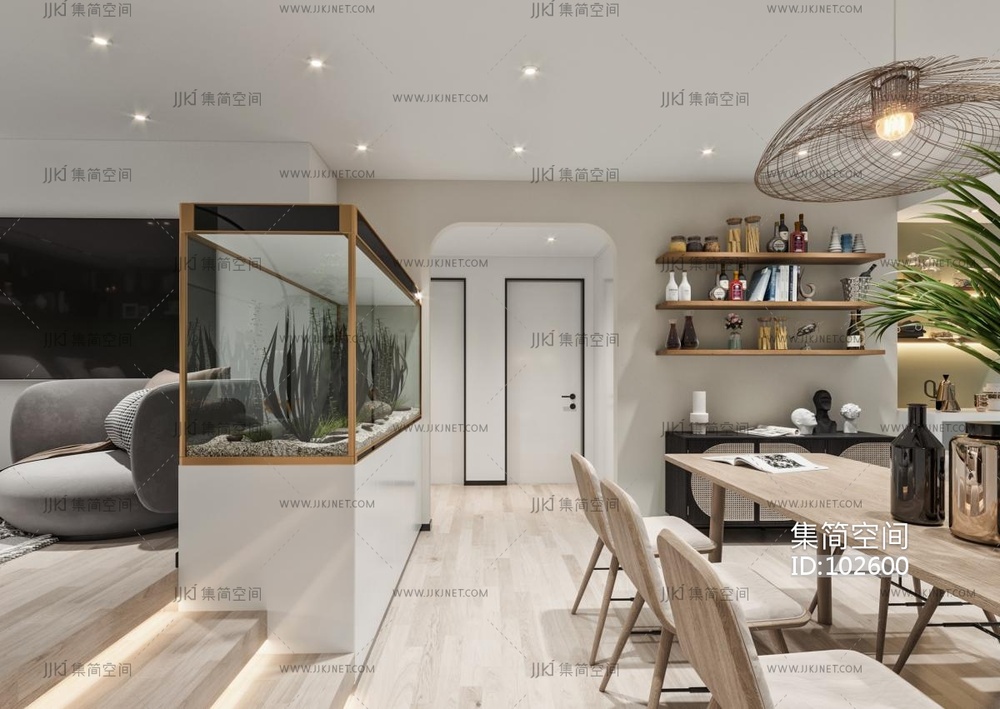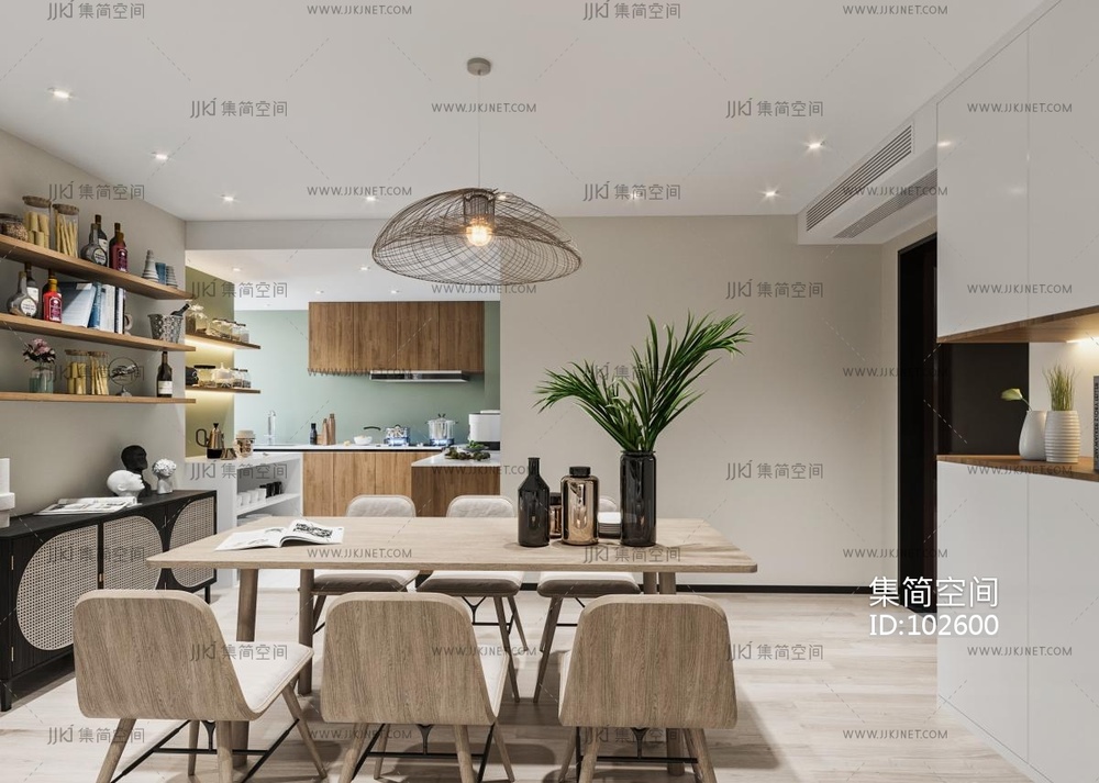 现代客厅餐厅 3d模型下载 [模型ID:102600]