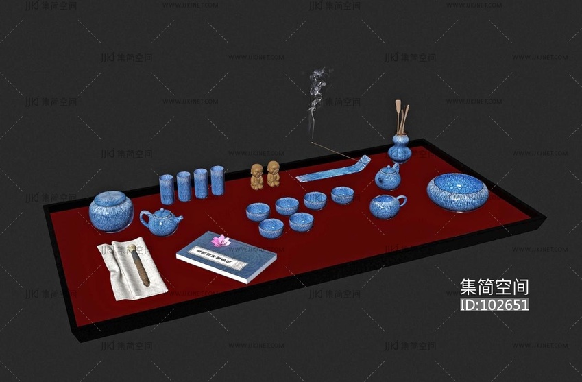 星月天葵建盏茶具茶盘组合 3d模型下载 [模型ID:102651]