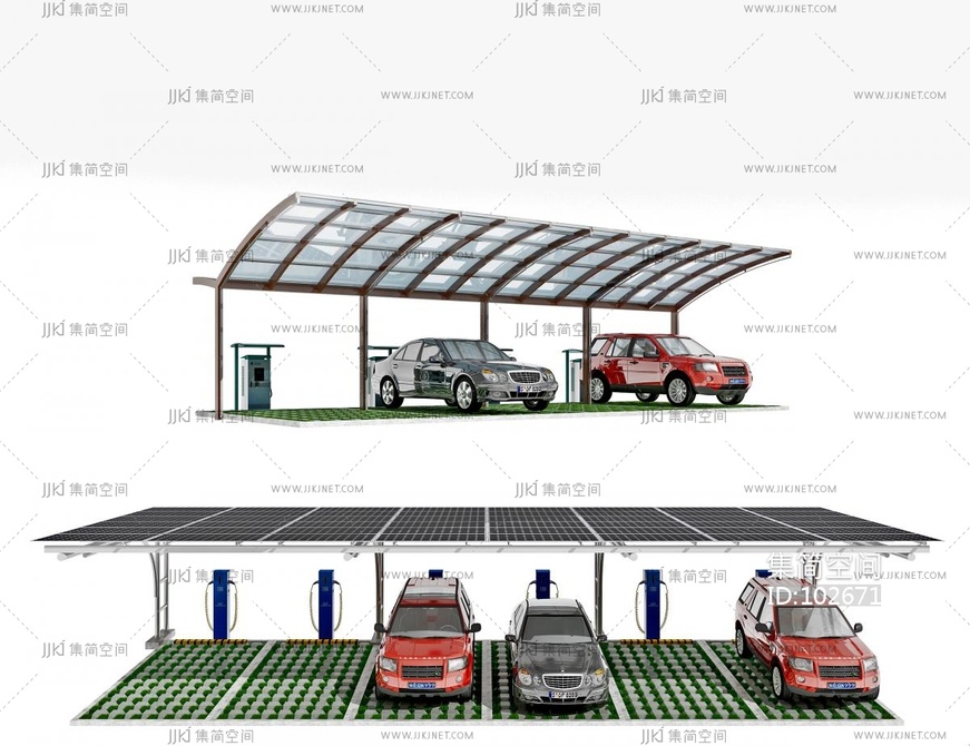 现代停车棚充电桩,户外遮雨棚 3d模型下载 [模型ID:102671]