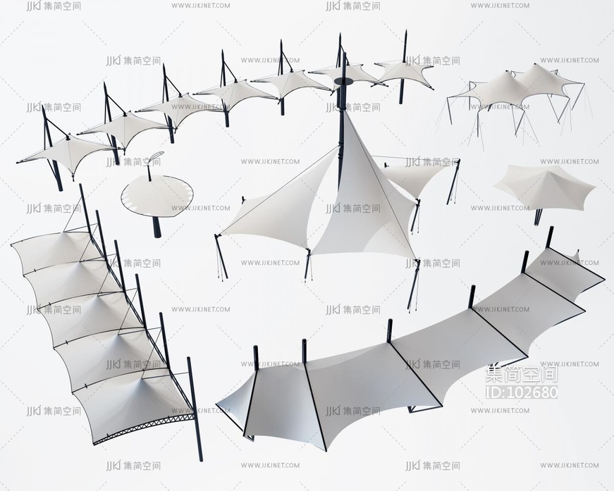 现代遮阳棚_遮阳伞_钢构_雨棚_休闲椅 (1)3d模型下载