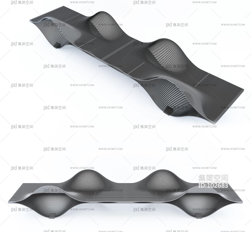 现代室外铁艺长椅, 3d模型下载 [模型ID:102683]