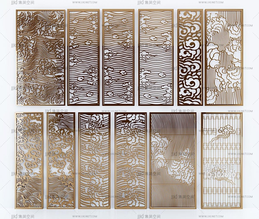 新中式云纹祥云屏风,隔断花格 3d模型下载 [模型ID:102690]