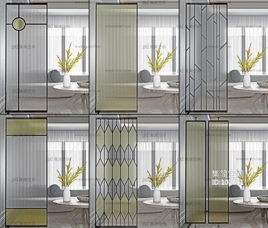 现代长虹玻璃屏风,隔断 3d模型下载 [模型ID:102691]