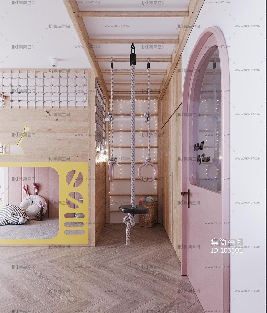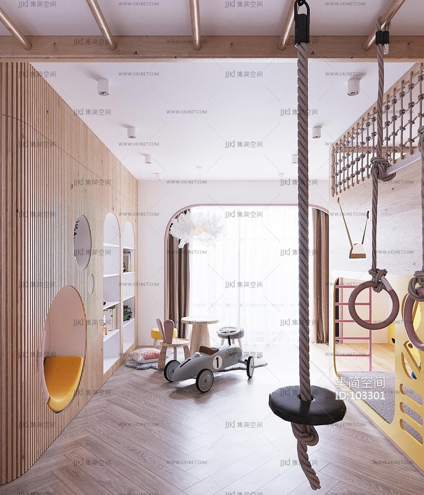 07-现代儿童房,儿童床学习桌-3d模型下载