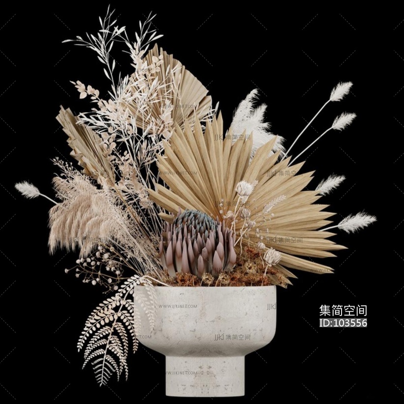 青瓷花盆中的树枝花束,植物插画3D模型cr3d模型下载