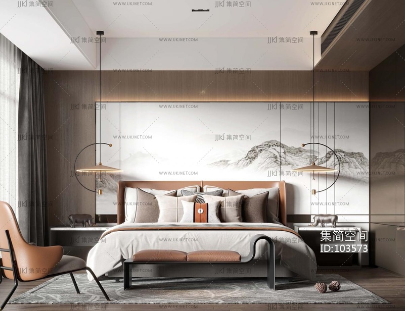 新中式卧室 3d模型下载 [模型ID:103573]
