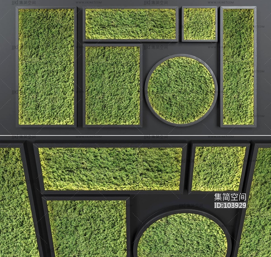 现代苔藓,绿植,植物背景墙 3d模型下载 [模型ID:103929]