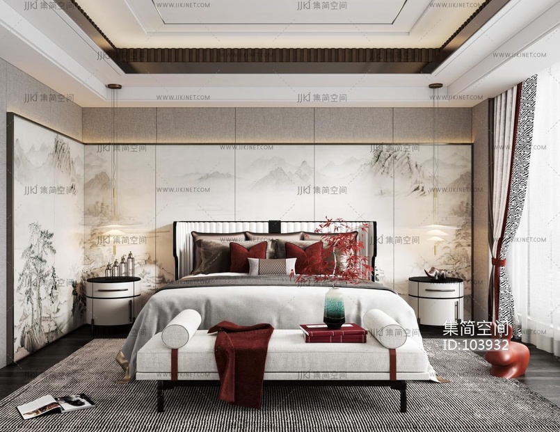 现代新中式卧室 3d模型下载 [模型ID:103932]