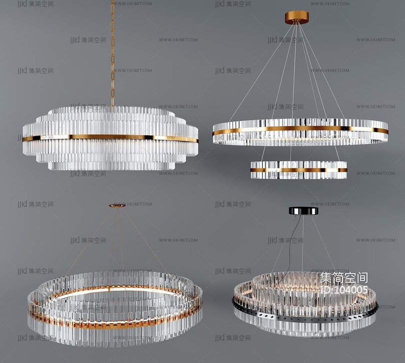 现代轻奢圆形水晶吊灯组合 3d模型下载 [模型ID:104005]
