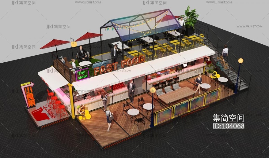 工业LOFT户外餐厅 3d模型下载 [模型ID:104068]