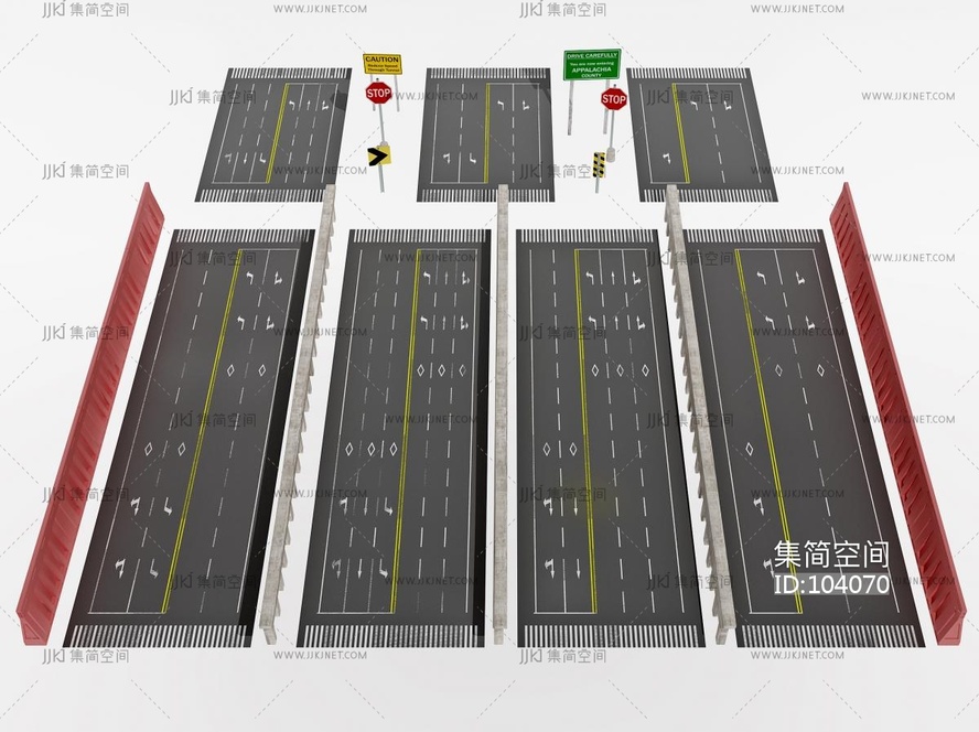 现代,马路,公路,道路,指示牌,车道,间隔栅栏 3d模型下载 [模型ID:104070]