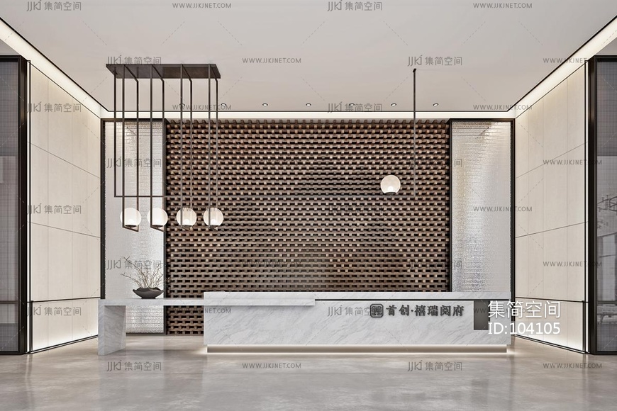 新中式售楼处前台,接待台, 3d模型下载 [模型ID:104105]