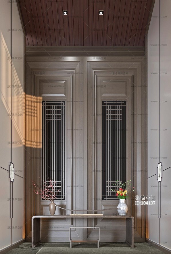 新中式玄关端景台,花瓶,条案 3d模型下载 [模型ID:104107]
