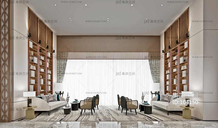 新中式售楼处接待区 3d模型下载 [模型ID:104150]