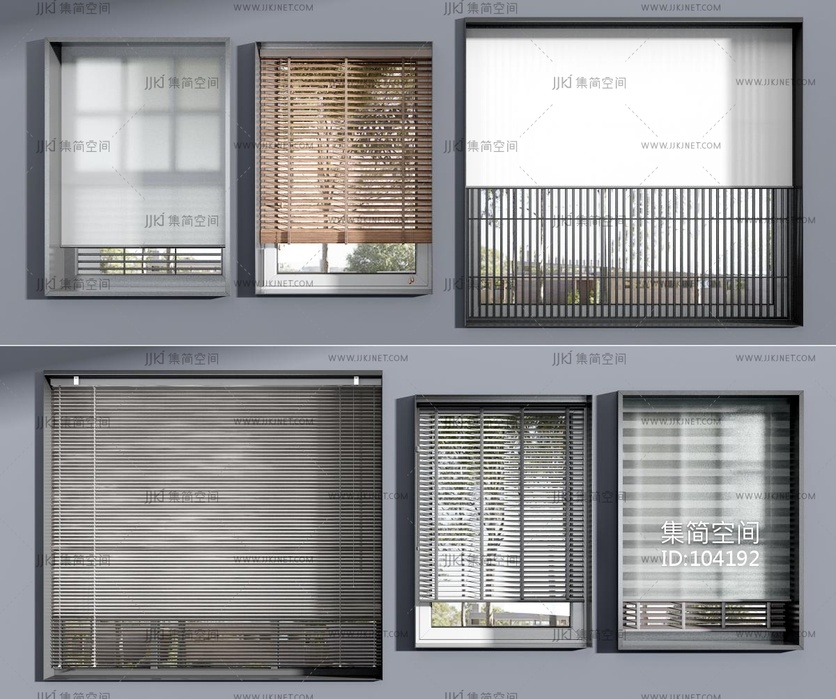 现代窗帘,竹帘,罗马帘组合 3d模型下载 [模型ID:104192]