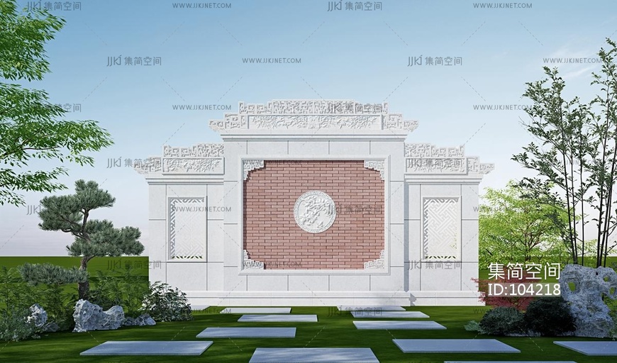 中式景墙,公园景墙 3d模型下载 [模型ID:104218]