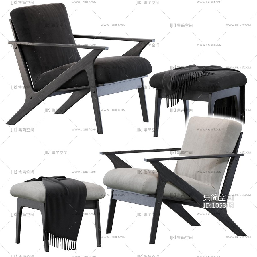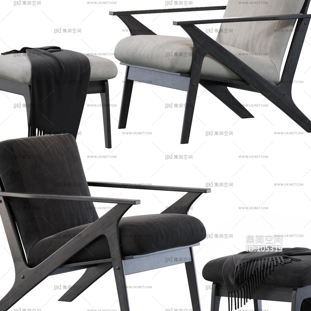02现代北欧实木布艺休闲椅沙发椅,椅子脚凳毛毯 (1) 3d模型下载 [模型ID:105319]