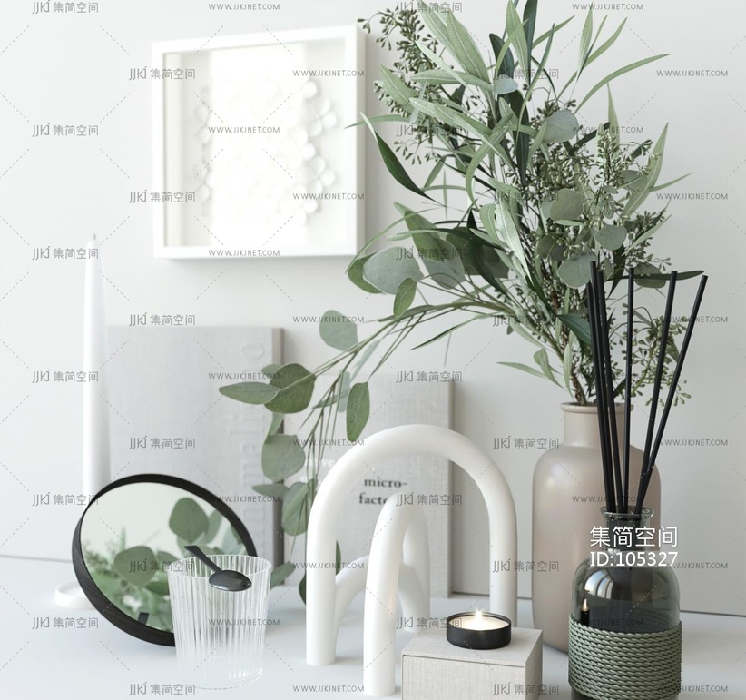现代北欧蜡烛花瓶香薰饰品摆件组合 3d模型下载 [模型ID:105327]