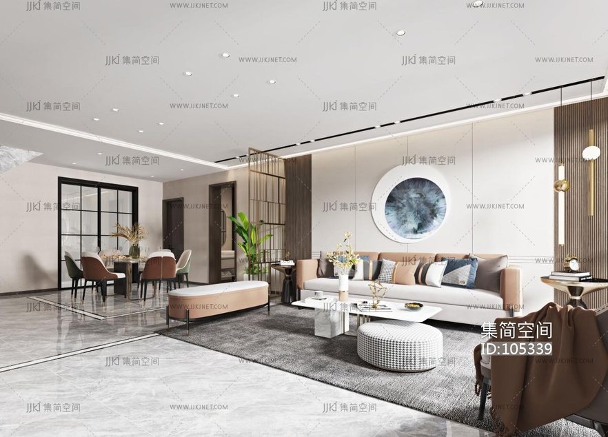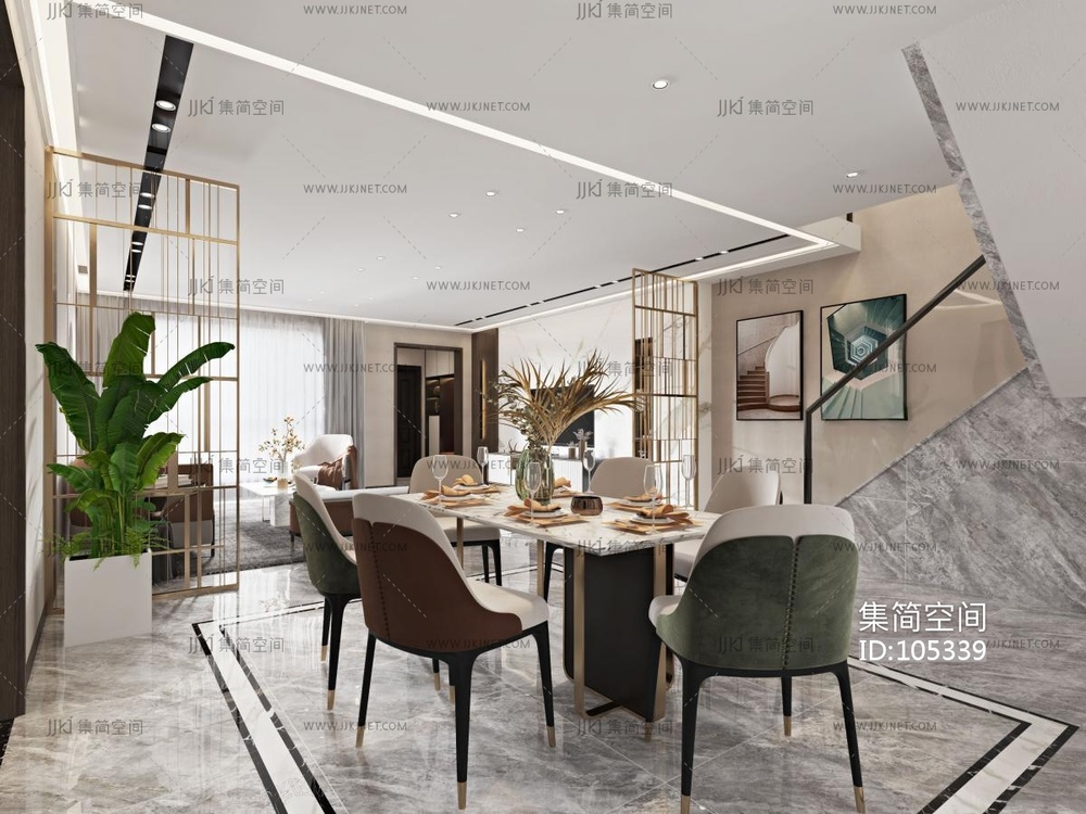 现代轻奢客餐厅 3d模型下载 [模型ID:105339]