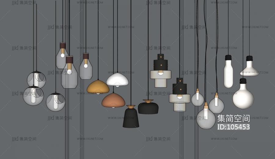 现代玻璃灯泡小吊灯组合 su草图模型下载 [模型ID:105453]