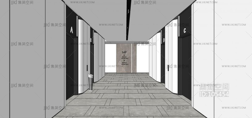 现代简约办公电梯厅,电梯间 su草图模型下载 [模型ID:105454]