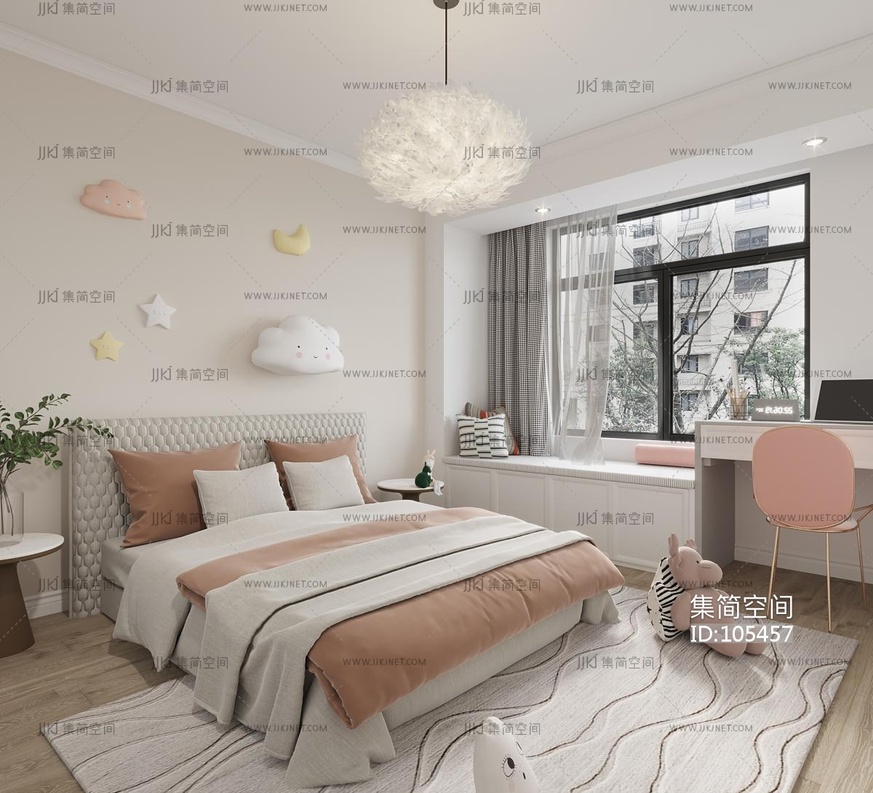07-现代儿童房,儿童床学习桌-3d模型下载