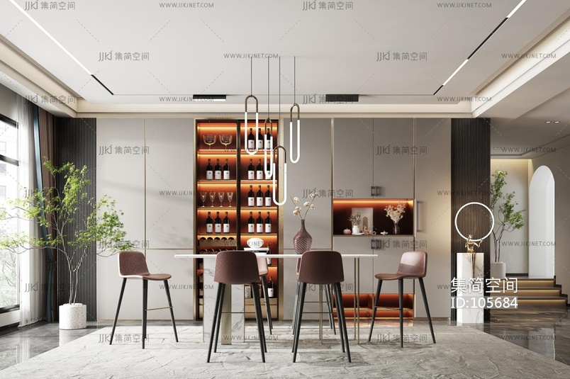 现代餐厅餐桌餐椅组合 3d模型下载 [模型ID:105684]