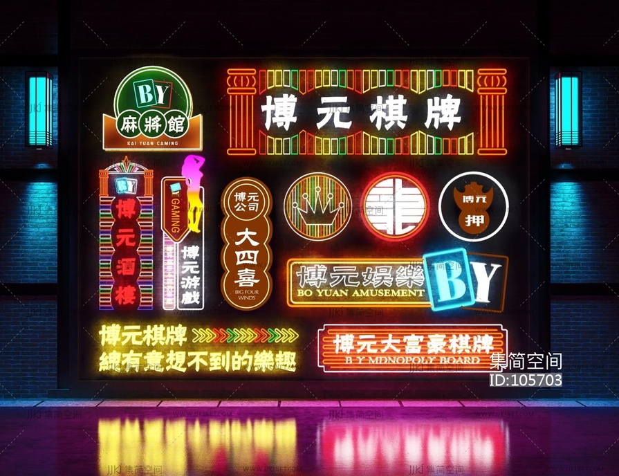 现代装饰灯,霓虹灯灯箱 3d模型下载 [模型ID:105703]