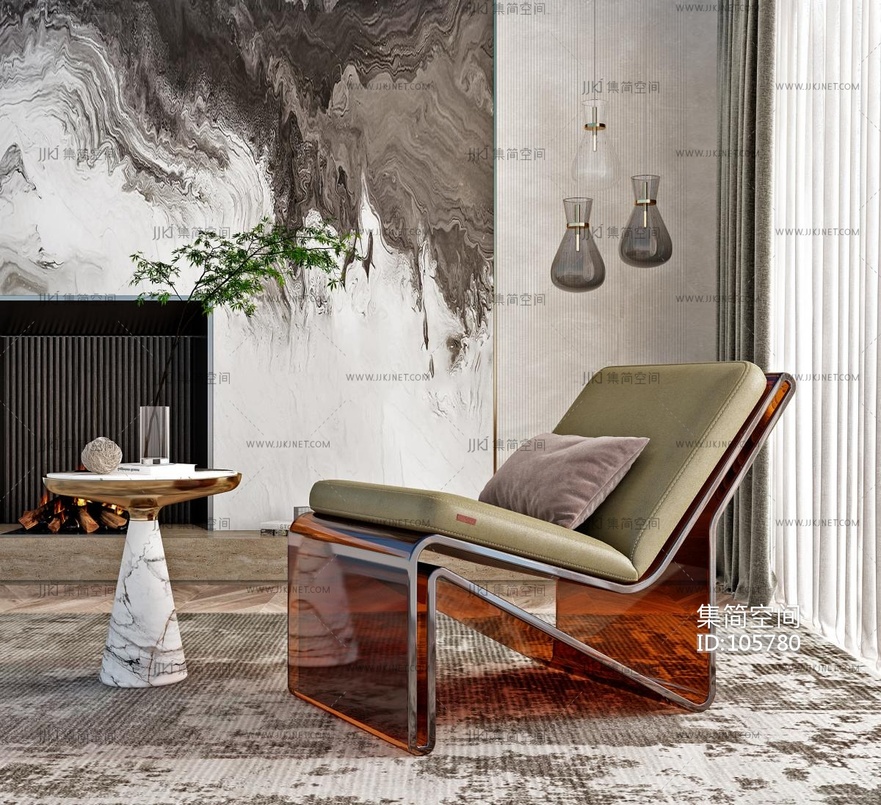 01-现代法式单人沙发_休闲椅_单椅_扶手椅圆形边几书本书籍玻璃水杯3D模型3d模型下载