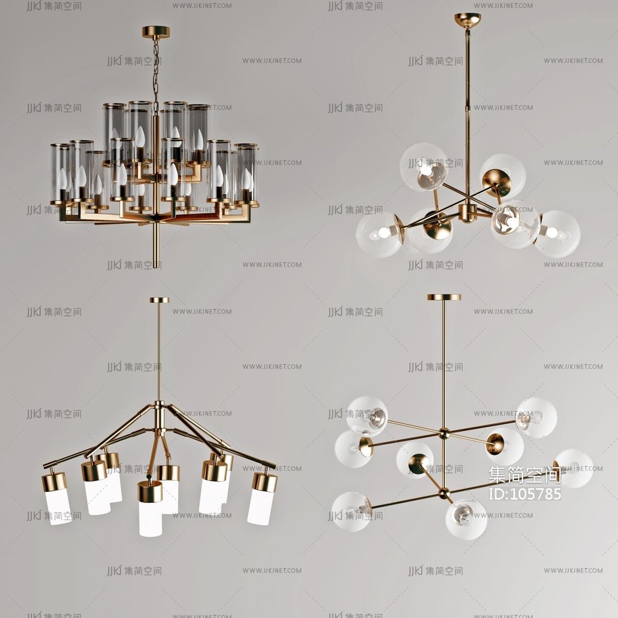 现代金属玻璃吊灯 3d模型下载 [模型ID:105785]