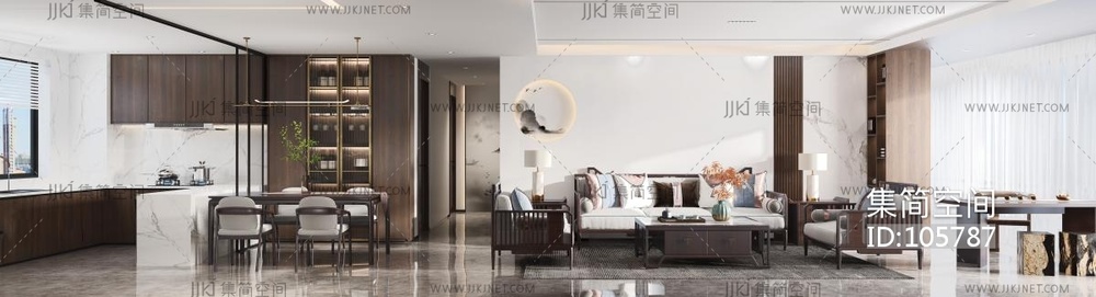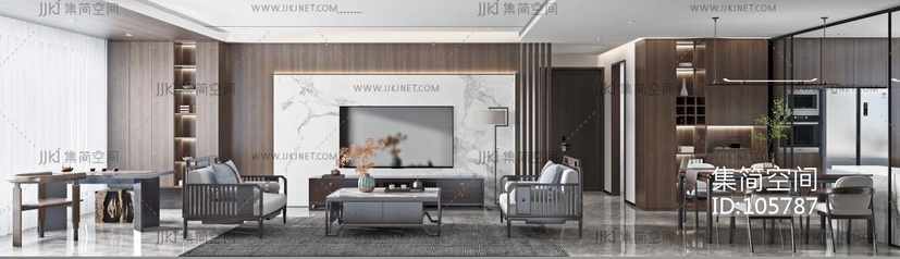 新中式客餐厅 3d模型下载 [模型ID:105787]