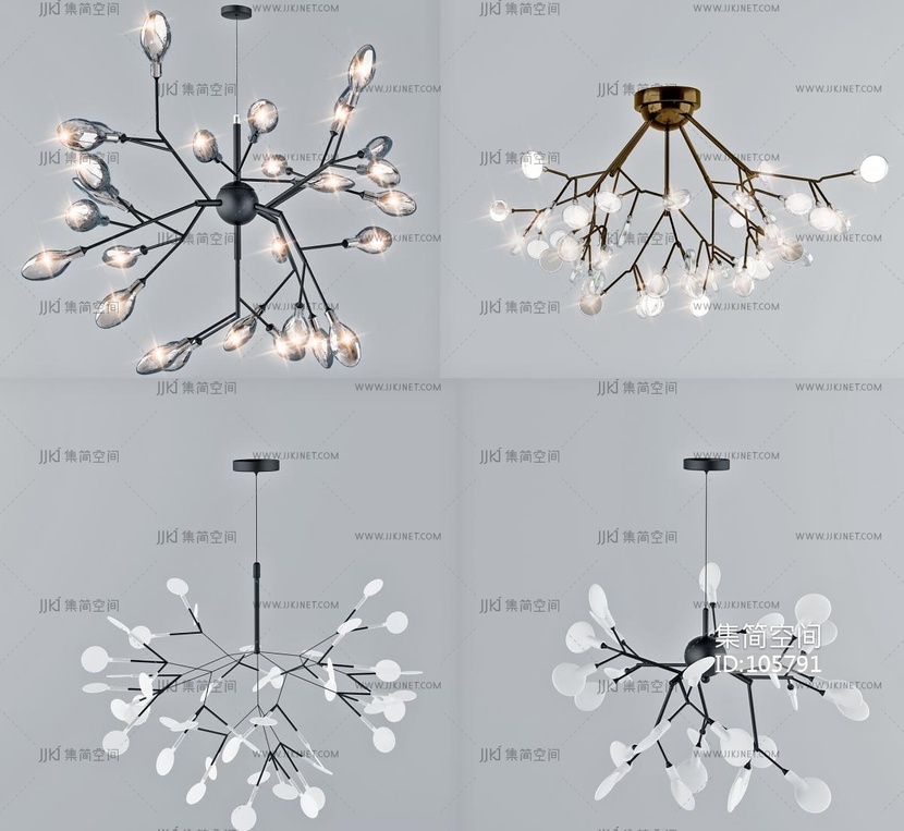 北欧树叶吊灯,吊饰, 3d模型下载 [模型ID:105791]