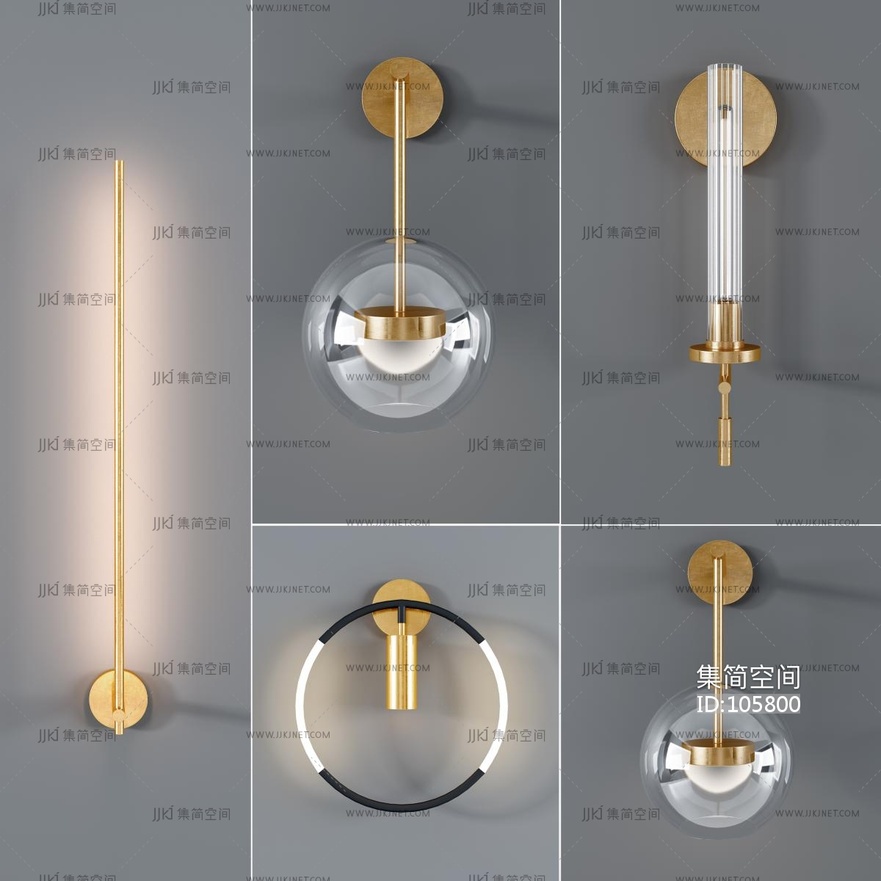 现代金属玻璃壁灯组合 3d模型下载 [模型ID:105800]