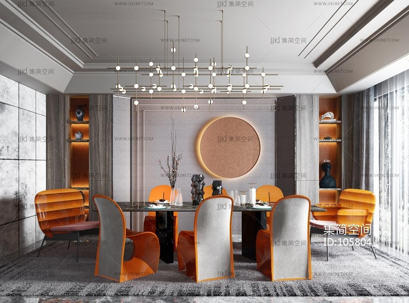 明德设计现代轻奢餐厅3d模型下载