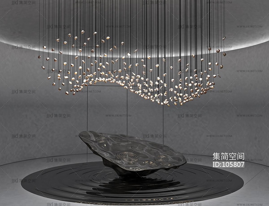现代新中式吊饰水景艺术品雕塑 3d模型下载 [模型ID:105807]