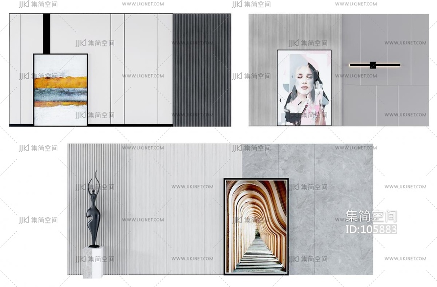 现代电视背景墙组合 3d模型下载 [模型ID:105883]