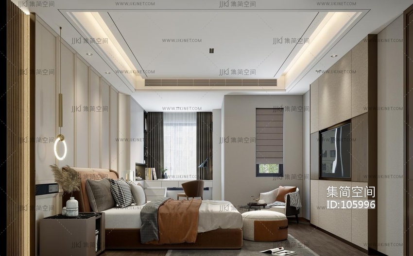 现代轻奢主卧室 3d模型下载 [模型ID:105996]