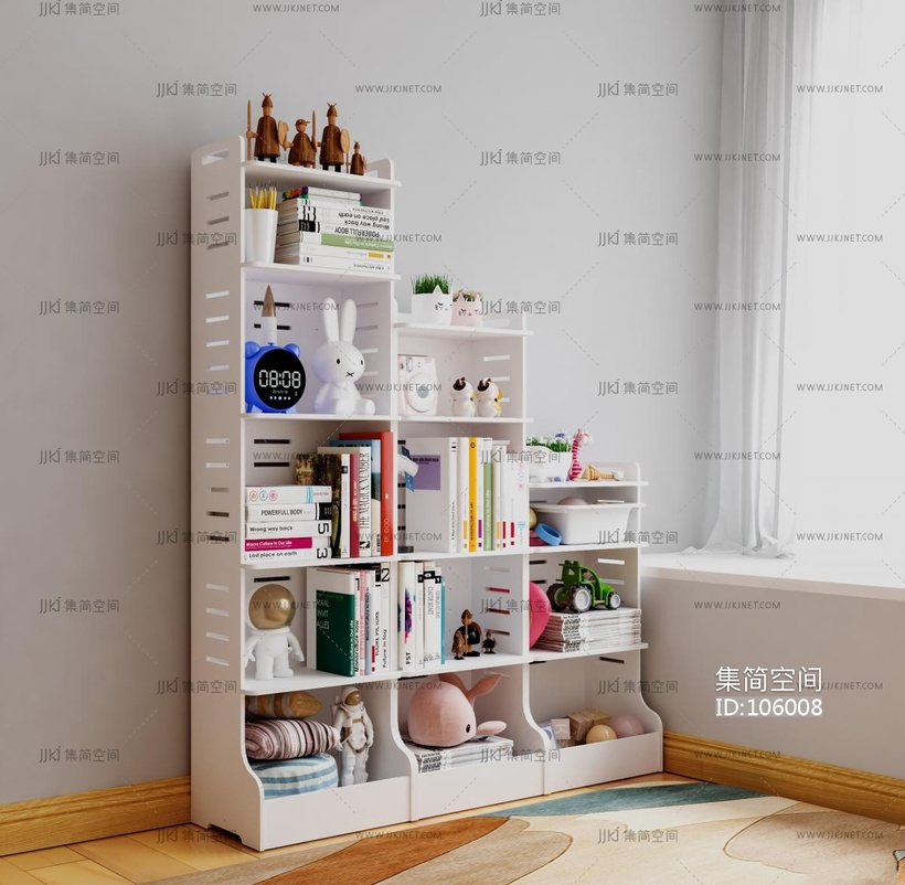 现代儿童房置物架及摆件组合 3d模型下载 [模型ID:106008]
