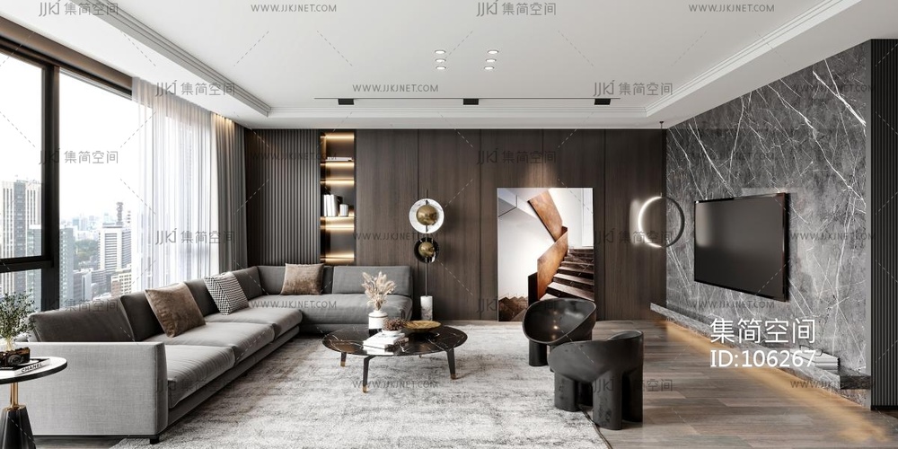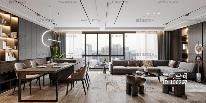 现代客厅餐厅 3d模型下载 [模型ID:106267]
