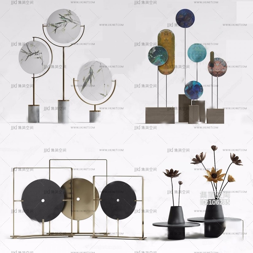 现代新中式雕塑摆件_饰品摆件组合3D模型3d模型下载