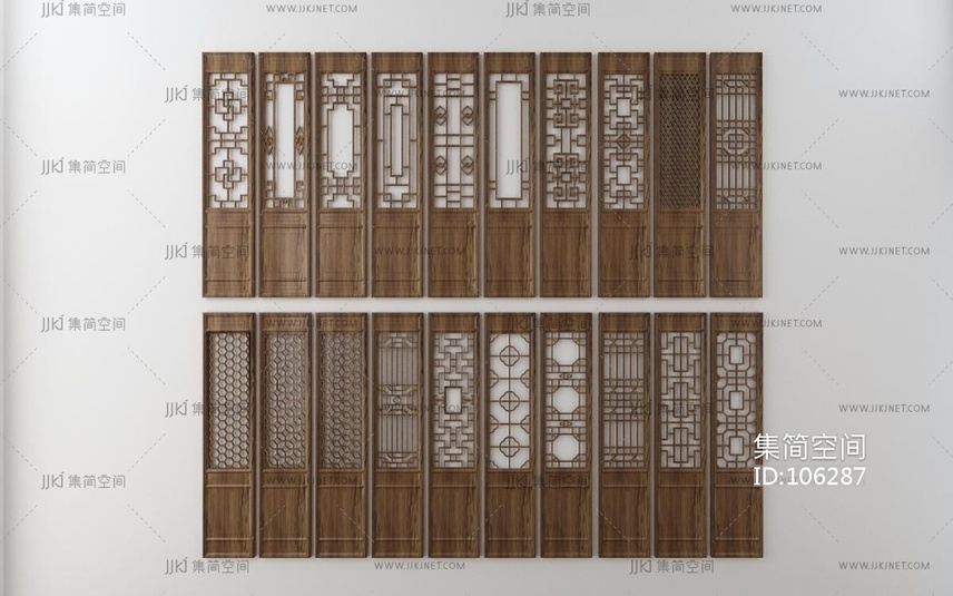 中式古典实木花窗门扇,实木,花格,屏风隔断组合 3d模型下载 [模型ID:106287]