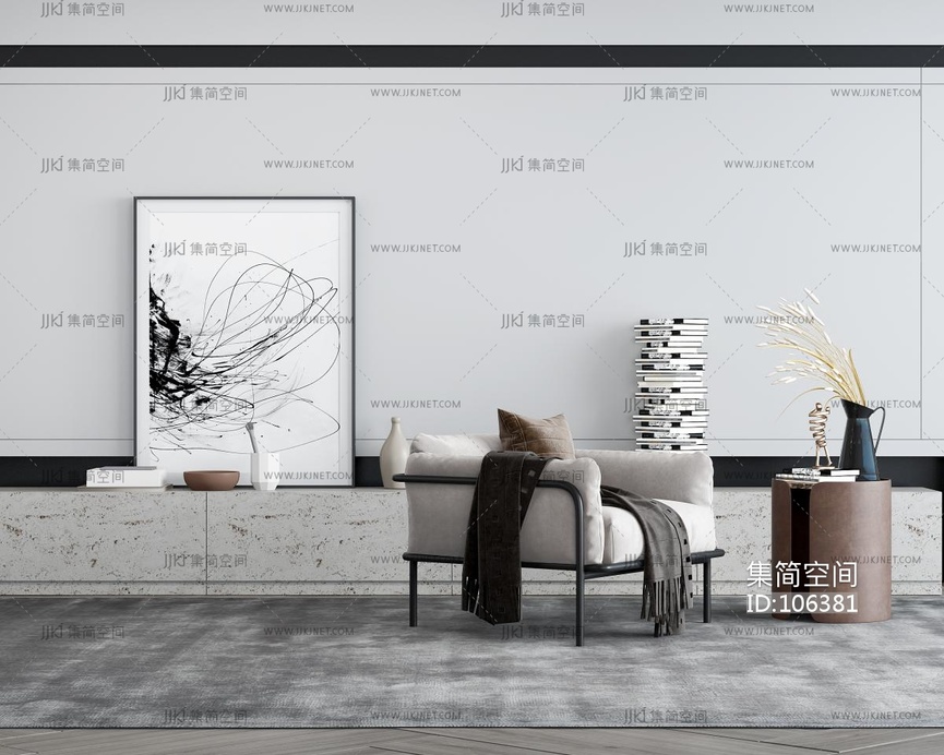 现代单人沙发边几组合 3d模型下载 [模型ID:106381]