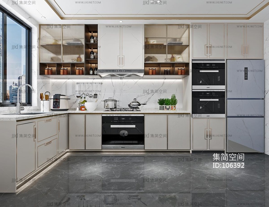 新中式厨房, 3d模型下载 [模型ID:106392]